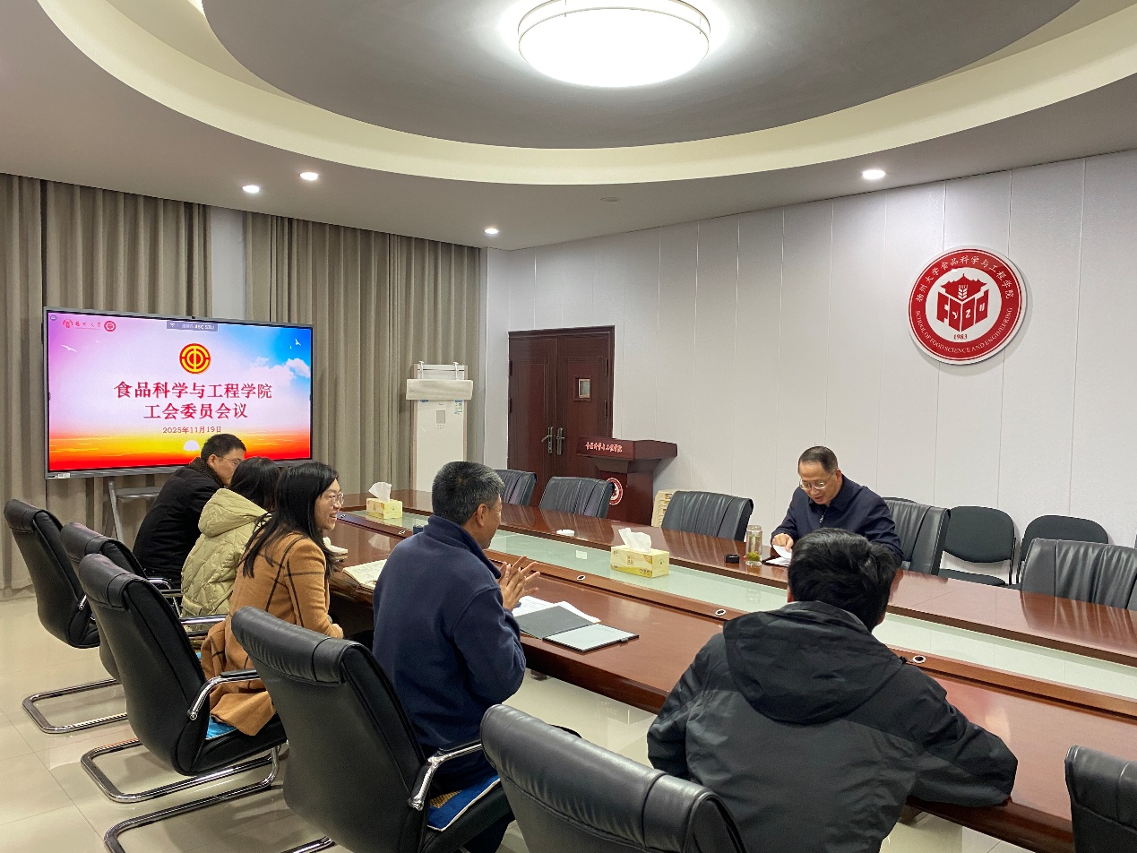 2025年11月19日,食品科学与工程学院工会在笃行楼四楼会议室召开了工会委员会议。学院党委书记戴世勇、工会主席葛庆丰及全体工会委员参会。