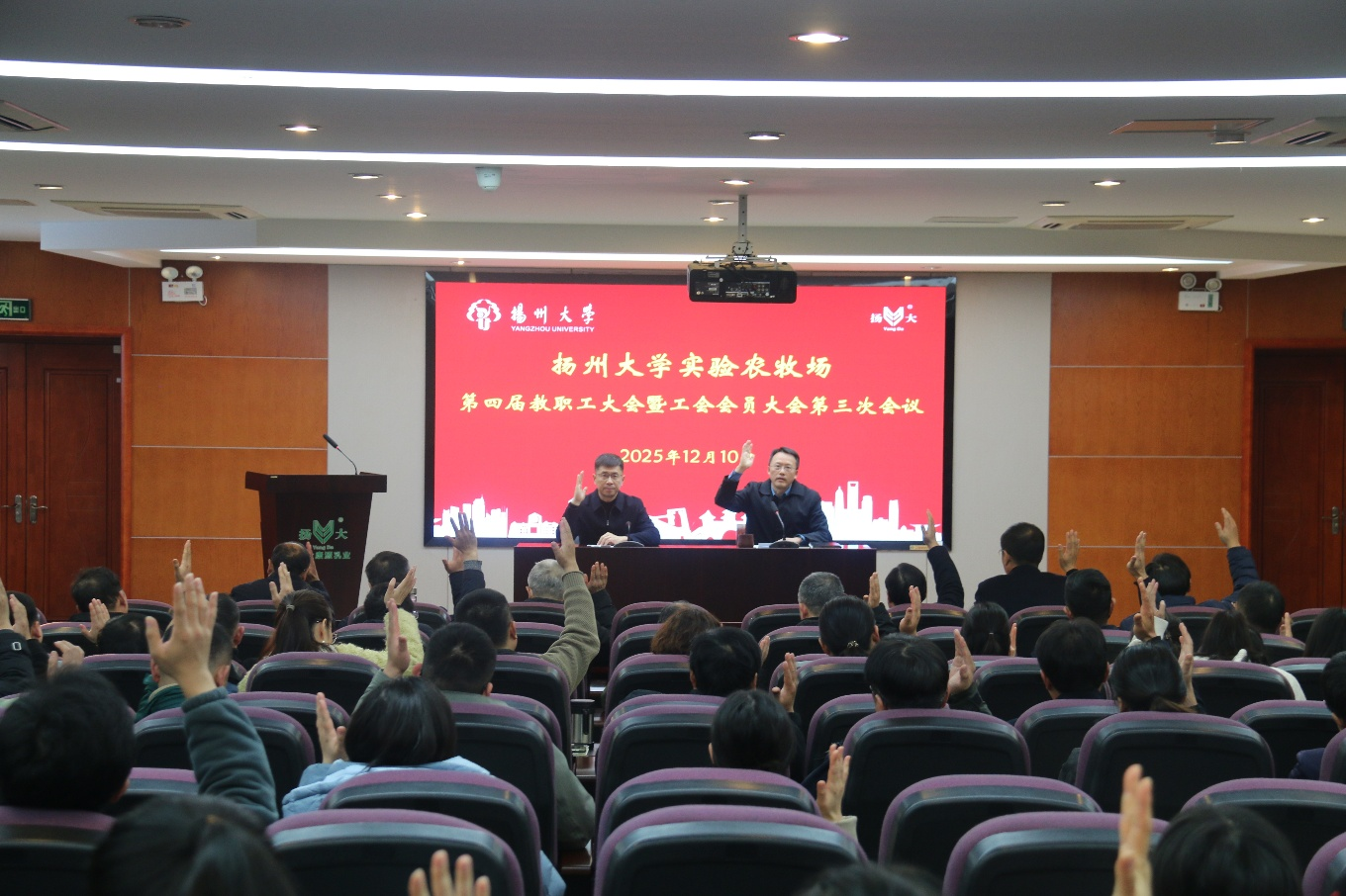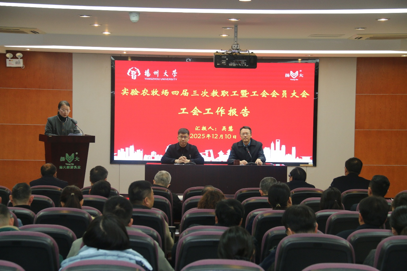 12月10日下午,实验农牧场在食品园场区科技报告厅召开第四届三次教职工暨工会会员大会。朱春生场长作工作报告,周建华副书记主持会议。全体场领导、五、六级职员出席会议。