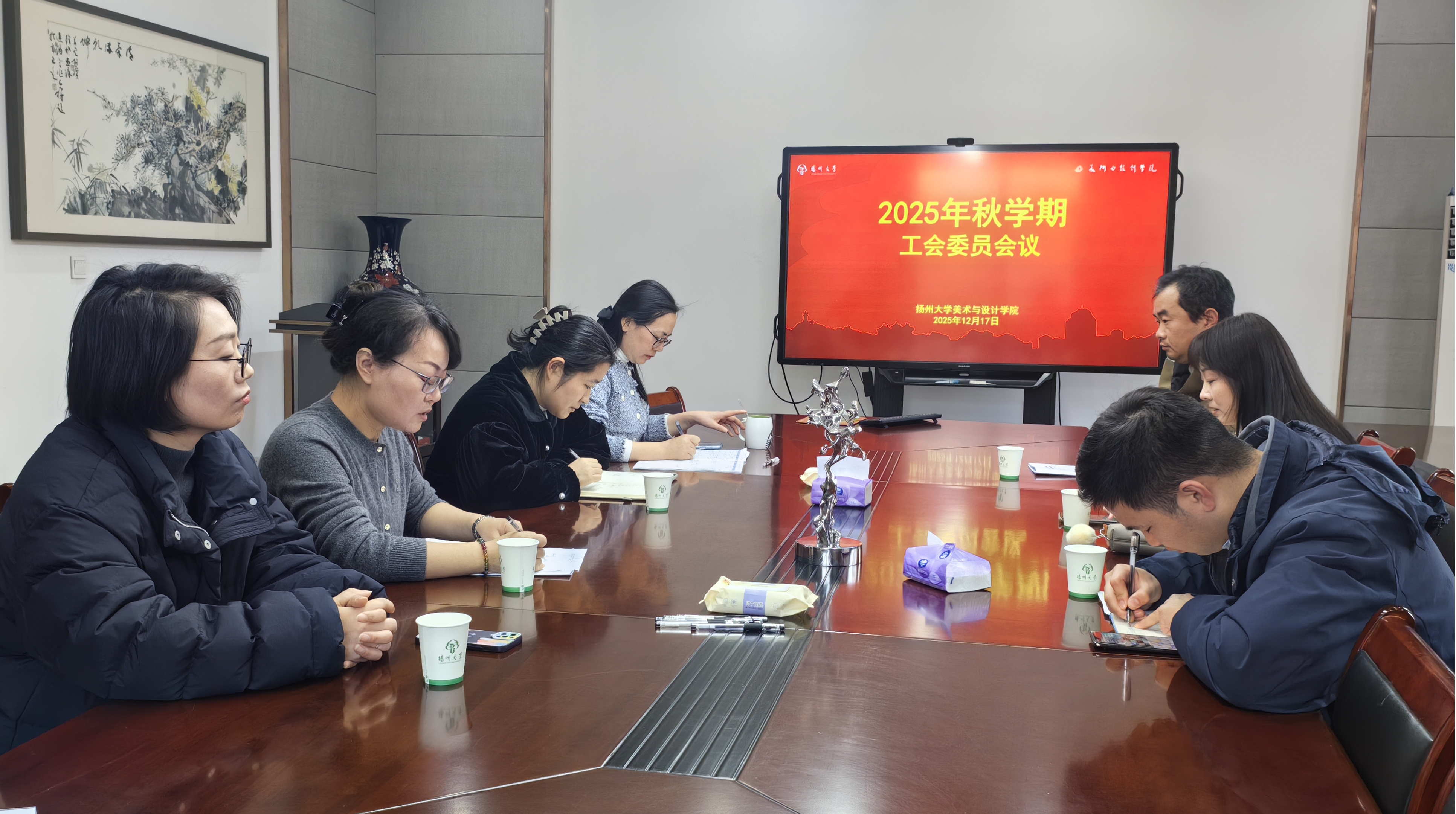 2025年12月17日下午,美术与设计学院工会全体委员在院会议室召开工作例会,会议梳理了秋学期以来工会所组织的各项活动开展情况及成效,并对学期末即将举办的院联欢活动相关事项进行了讨论。会议还针对校工会近期发布的年度工会工作先进个人、“文明家庭”评选等相关通知进行学习,根据文件要求进行推选和评议。
