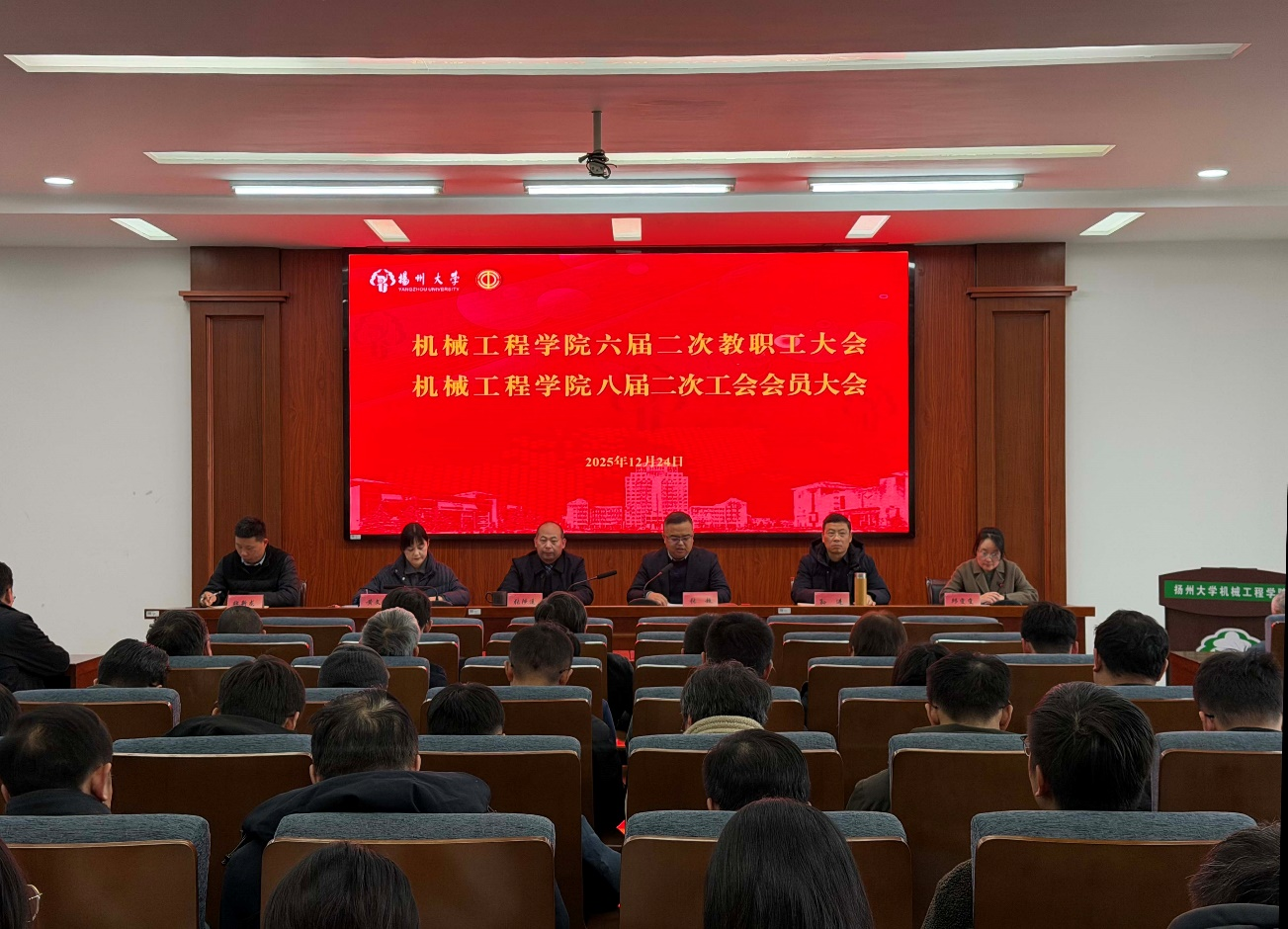 12月24日下午,机械工程学院在扬子津校区力行楼401汇报厅召开学院六届二次教职工暨八届二次工会会员大会。全体院领导、教职工、工会会员参加会议,大会由院党委副书记黄文婷主持。