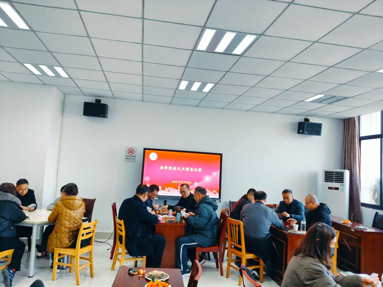 为丰富广大教职工的文化生活,营造合作共赢的工作氛围,2025年12月30日下午,法学院工会在笃行楼举办了迎元旦师生联谊会和教职工掼蛋比赛。在师生联谊会上院党委书记花瑞锋揭晓了法学院2025年度“十件大事”的评选结果。