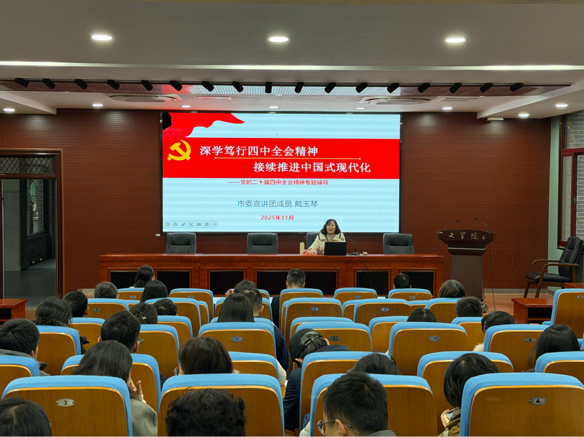 12月31日,文学院开展“职工大讲堂”活动,院党委书记郭丽主持了活动,带领全院教职工学习了党的二十届四中全会精神。