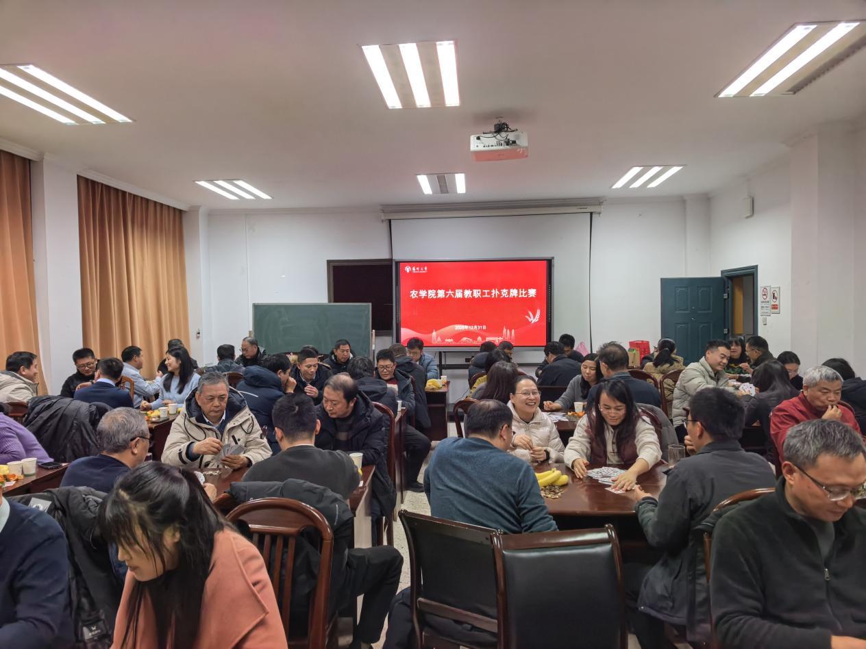 为丰富教职工业余文化生活,增进会员之间的交流与情谊,扬州大学农学院工会在2026年元旦期间组织举办了第六届教职工扑克牌“掼蛋”比赛。院长陆大蕾、副院长李钱峰等学院领导一同参与活动。
