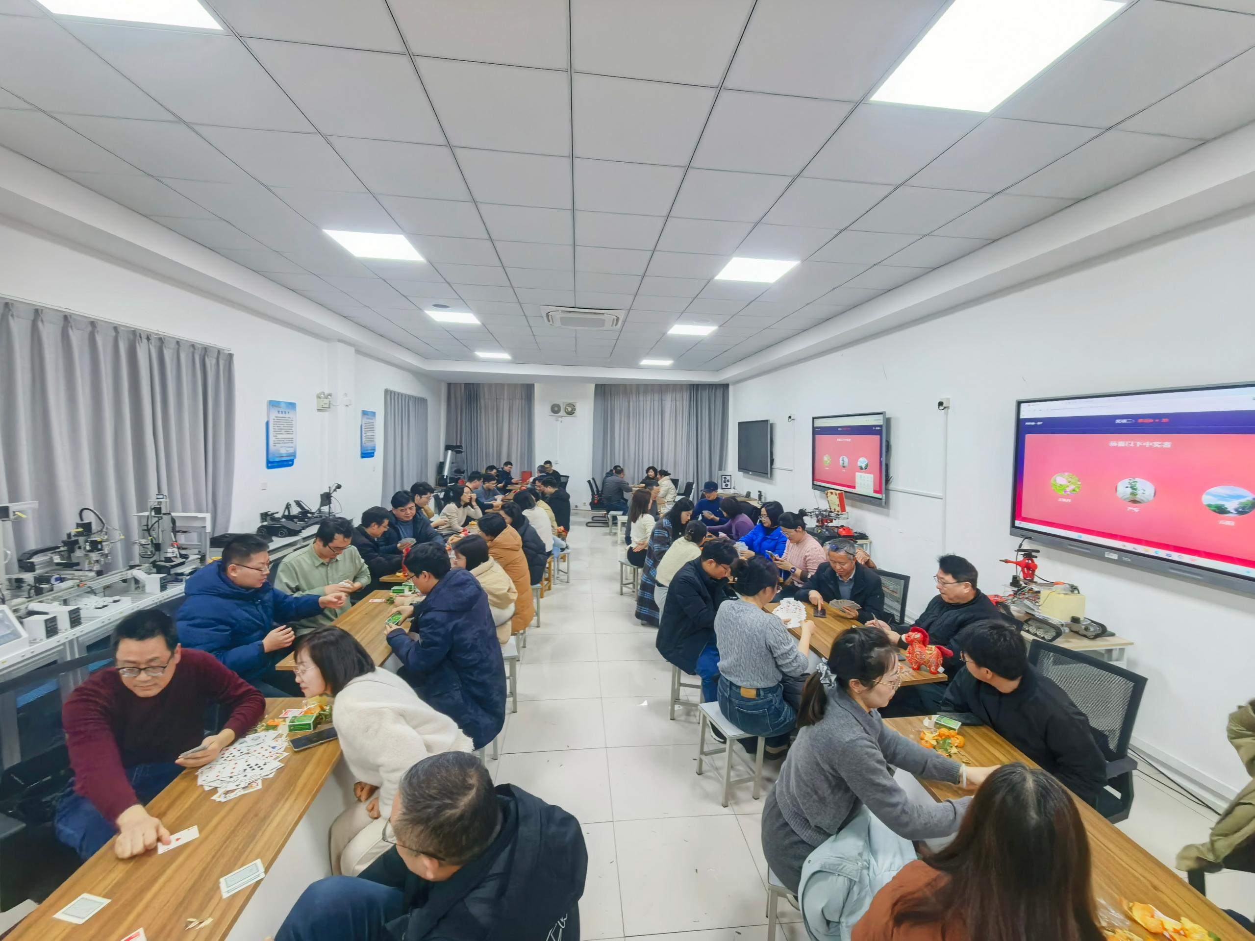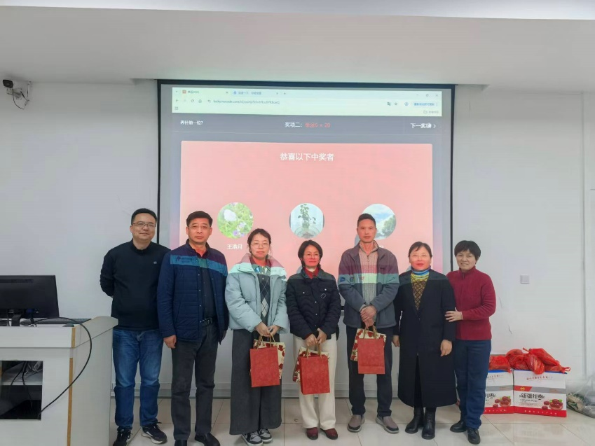 联谊会活动内容丰富,形式活泼,分为两个主要环节。首先是气氛热烈的抽奖环节,教职工们通过微信扫码参与,分批次抽取,并每位老师都获得了一份精心准备的节日礼品,现场惊喜连连。