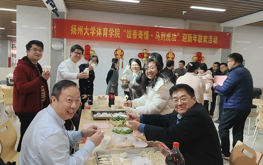 1月14日下午,由体育学院工会主办的体育学院“饺香寄情·马到成功”迎新年联欢活动在扬子津校区西食堂顺利举行。