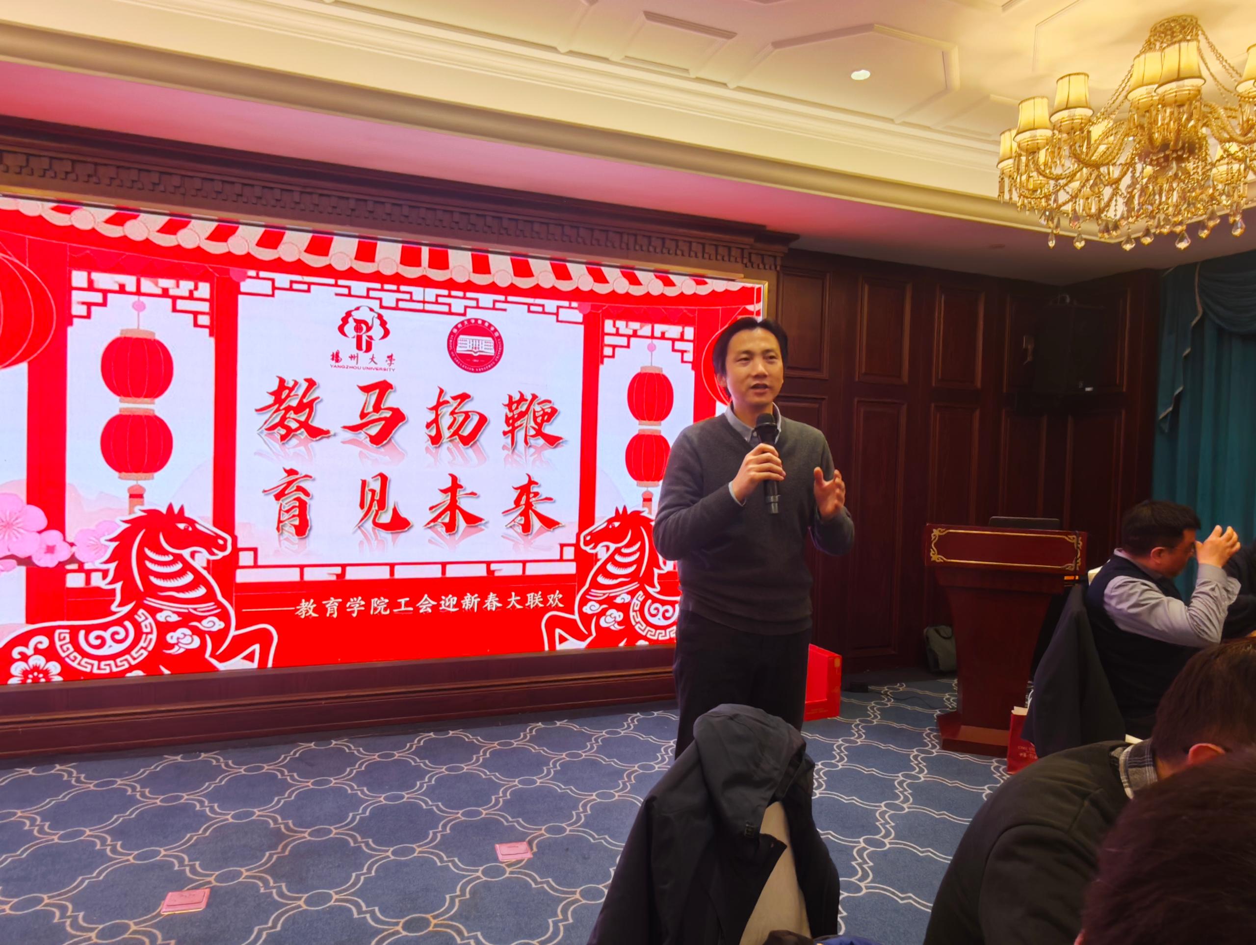 杨咏代表学院向老师们致以新春祝福,他肯定了学院过去一年的发展成果,勉励大家以团结协作的精神再创佳绩。祝愿大家在新的一年里,如骏马奔腾般锐意进取,如马到成功般事事顺遂。