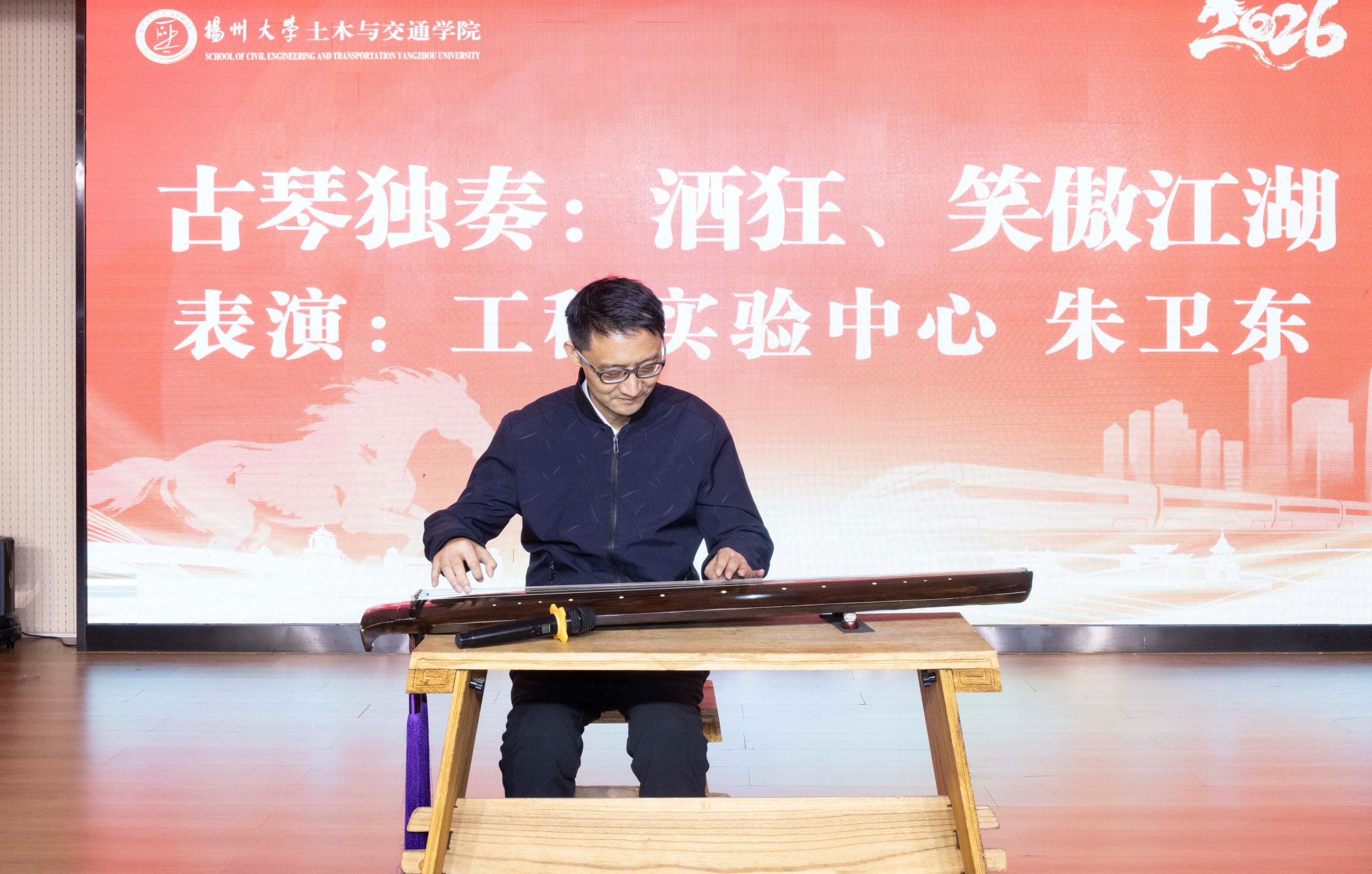 工程管理系大合唱《相亲相爱一家人》温暖开场,院领导班子原创诗朗诵《我们是新时代的土交交通人》铿锵有力,绘制了学院高质量发展愿景;实验中心朱卫东老师的古琴独奏惊艳四座;土木工程系教师深情吟诵毛泽东诗词联读;智慧交通系《真心英雄》引发全场大合唱;建筑系师生自编歌舞《高雅人上》笑点与亮点齐飞;团委、学工办辅导员压轴唱响《明天会更好》,为学院送上新年祝福。穿插其间的抽奖环节共产生特等奖2名、一等奖10名、二等奖20名、三等奖40名,掌声、欢呼声此起彼伏。最后,全体教职工合影留念,为这场“团圆盛会”画上圆满句号。