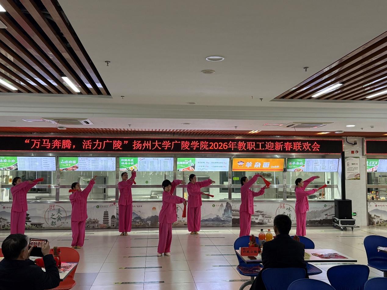 活动现场暖意升腾:食堂里飘着饺子香,教职工们围坐桌前,填馅、捏褶,一个个饱满的饺子裹满年味;舞台上节目轮番登场,院工会开场《恭喜发财》瞬间点燃气氛,经管学院吴嘉伟的《你是我的眼》深情动人,土电化药团队的《海芋恋》活力洋溢,学工小组演绎的《夫妻双双把家还》诙谐温馨;教工舞蹈队的《太极幻影》刚柔并济,文法、旅艺老师的独唱婉转悠扬,机电系23 人同台唱响《最炫民族风》将氛围推向高潮,辅导员团队的《骏马奔腾迎新春》更是呼应 “马年” 主题,尽显广陵人的蓬勃朝气。