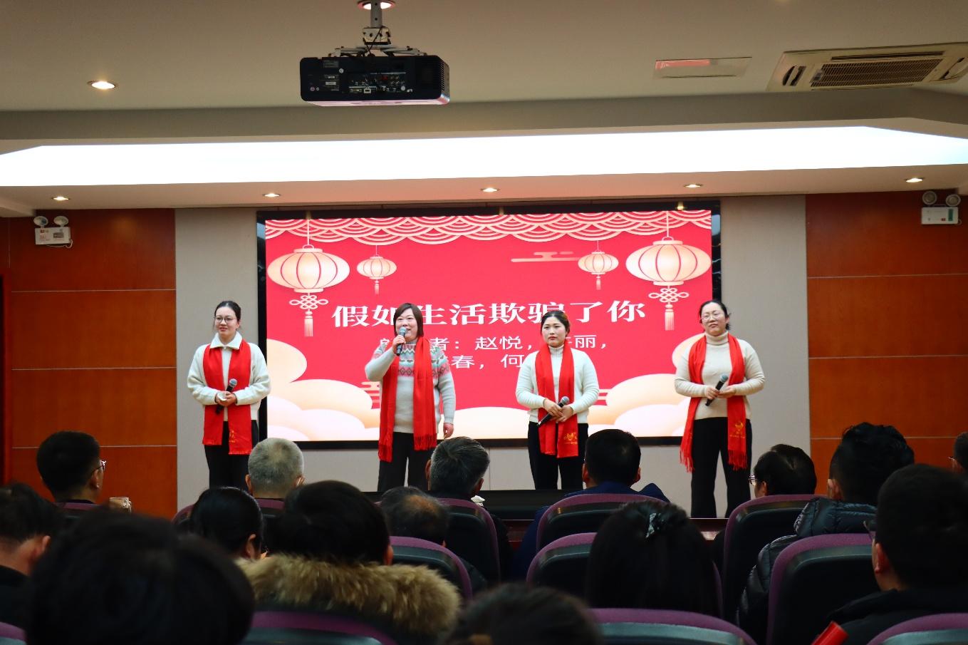 联欢会上,各部门员工表演了歌曲、脱口秀、朗诵、古筝、洞箫、舞蹈等丰富多彩的文艺节目。