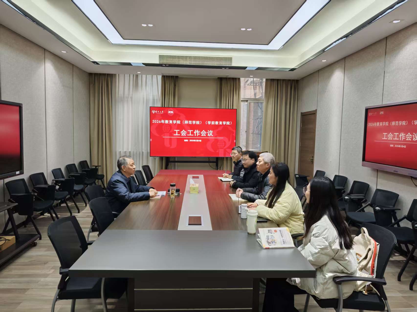 3月4日下午,教育学院(师范学院)(学前教育学院)召开工会工作布置研讨会,院党委书记杨咏参加会议并讲话。会议由院工会主席顾小兵同志主持。