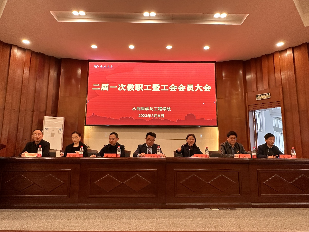 3月8日下午,水利科学与工程学院隆重召开二届一次教职工暨工会会员大会。会议由学院党委书记王建军主持,校工会高静副主席应邀到会,院党政领导班子成员、院工会主席、全体教职工和工会会员参加。