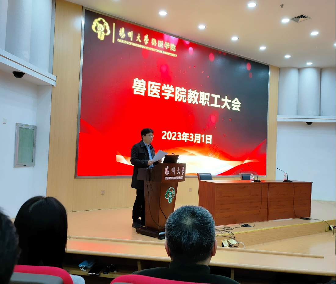 3月1日,兽医学院在荷花池校区逸夫报告厅召开了全院教职工大会和工会会员大会。院长王志强主持会议并作学院2022年度工作总结和2023年重点工作部署。
