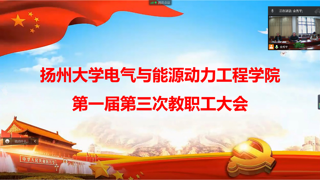 2022年12月16日下午,电能学院隆重举行第一届第三次教职工暨工会会员大会。院党政领导班子及全体教职工以线上线下相结合的方式参会,会议由院党委副书记陈春霞主持。