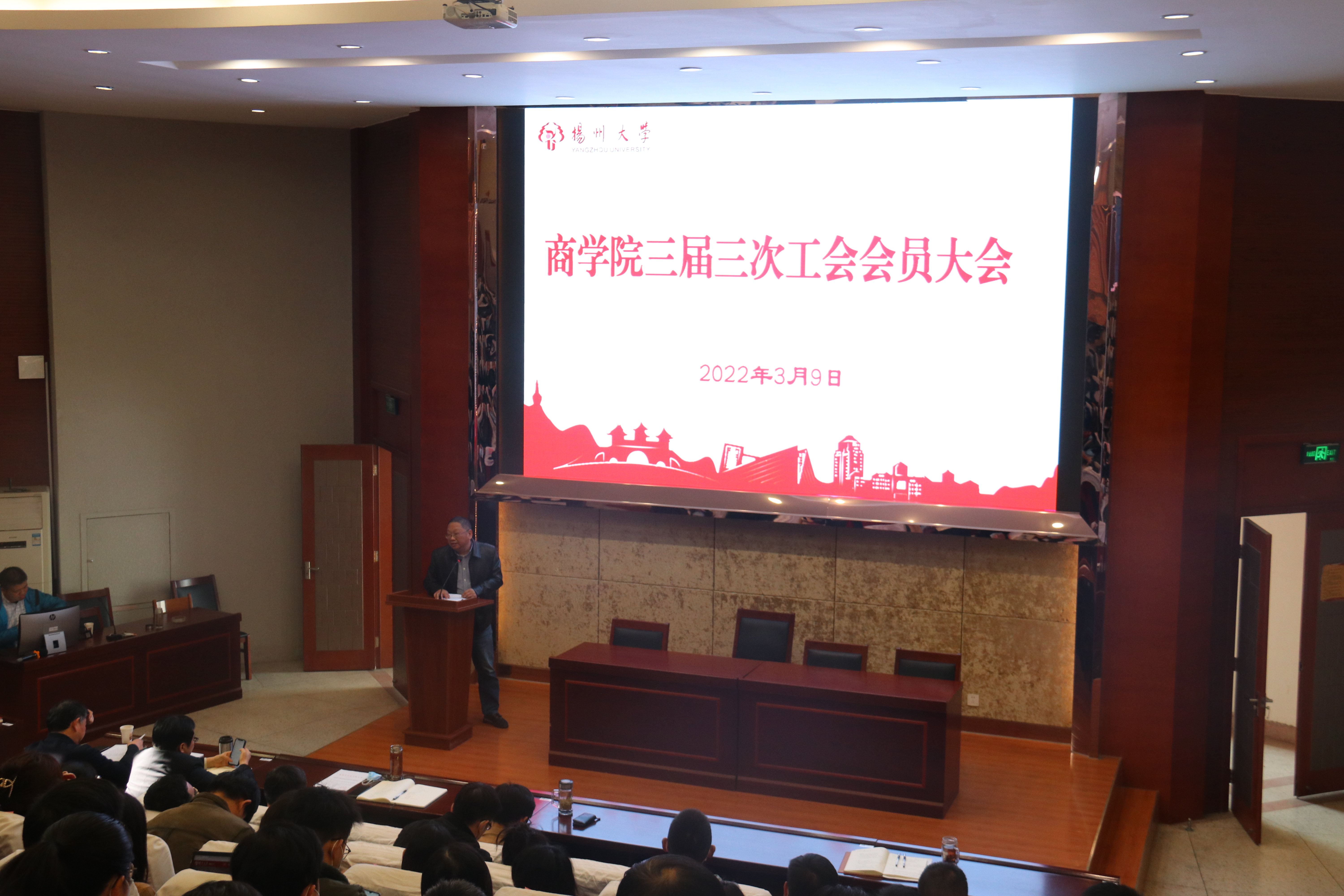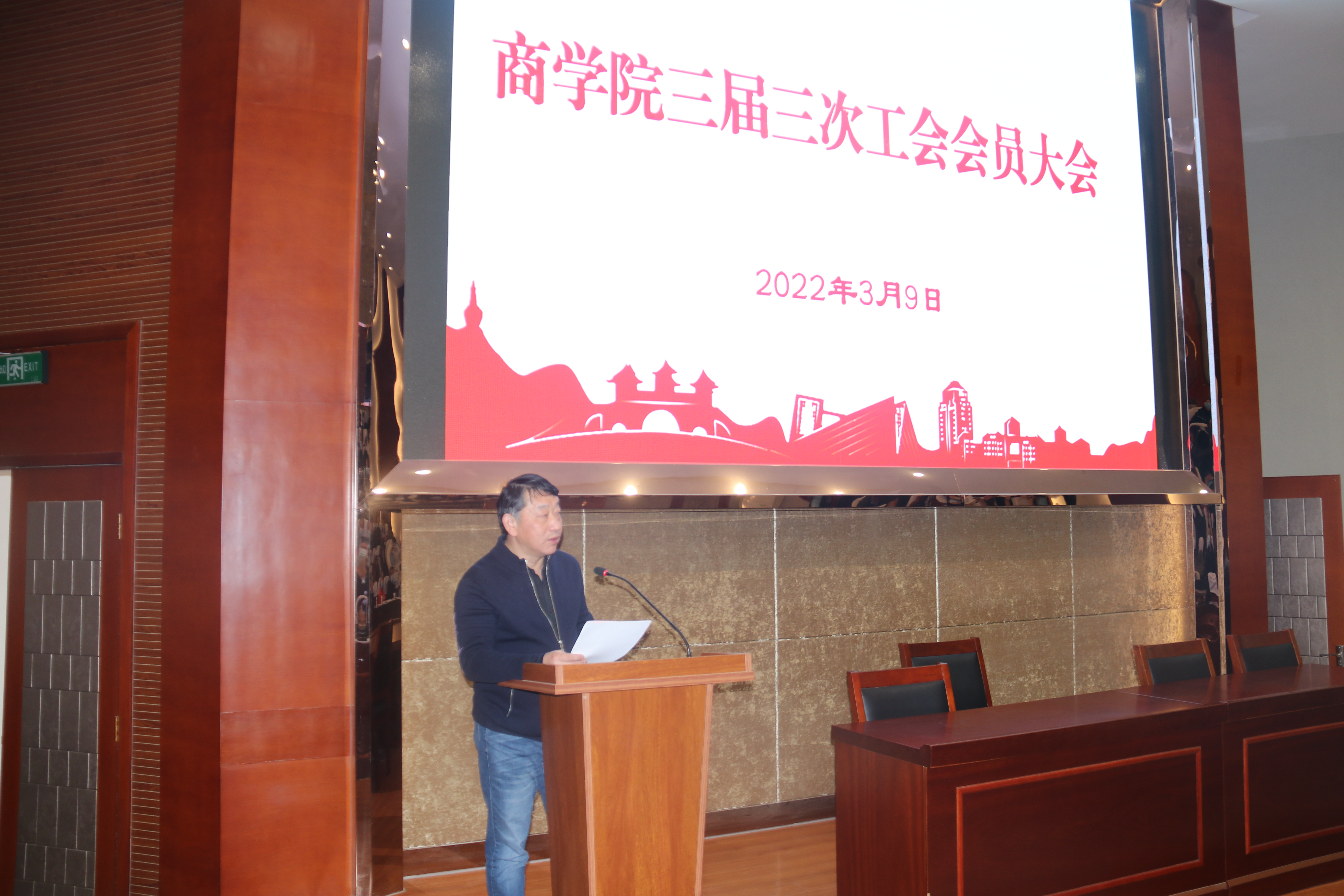 3月9日下午,商学院召开三届三次工会会员大会。会议由院党委书记孟益宏同志主持,秦兴方院长代表学院领导班子向全体会员做工作总结和2022年学院工作部署,袁春宏主席做工会工作报告。