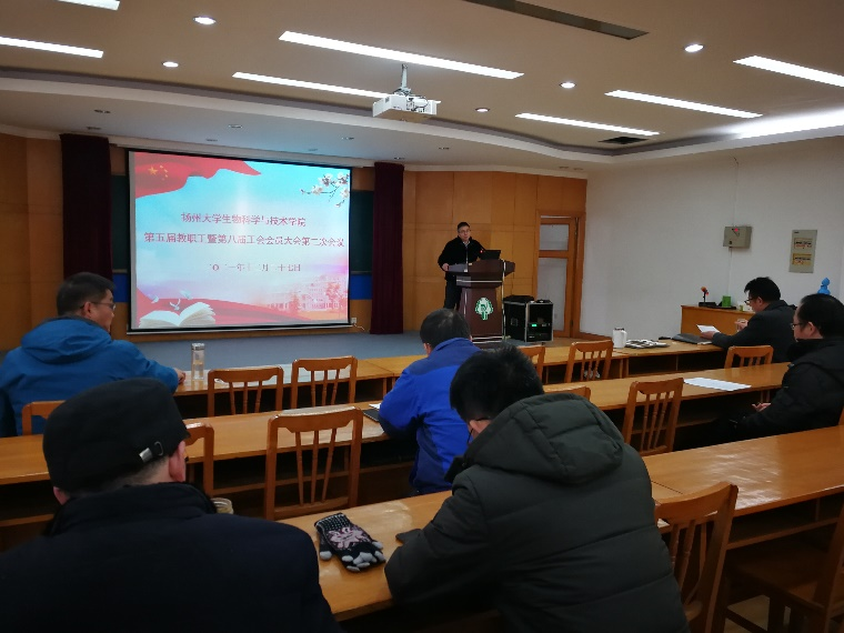 2021年12月27日,生科学院第五届二次教职工大会暨八届二次工会会员大会在学院二楼报告厅顺利召开。全院教职工参加会议,会议由院党委书记王建军主持。