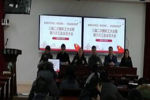 12月23日下午,教育科学学院三届二次教职工大会暨六届一次工会会员大会在65号楼西附二楼报告厅召开,全体院领导及工会会员参加了会议。