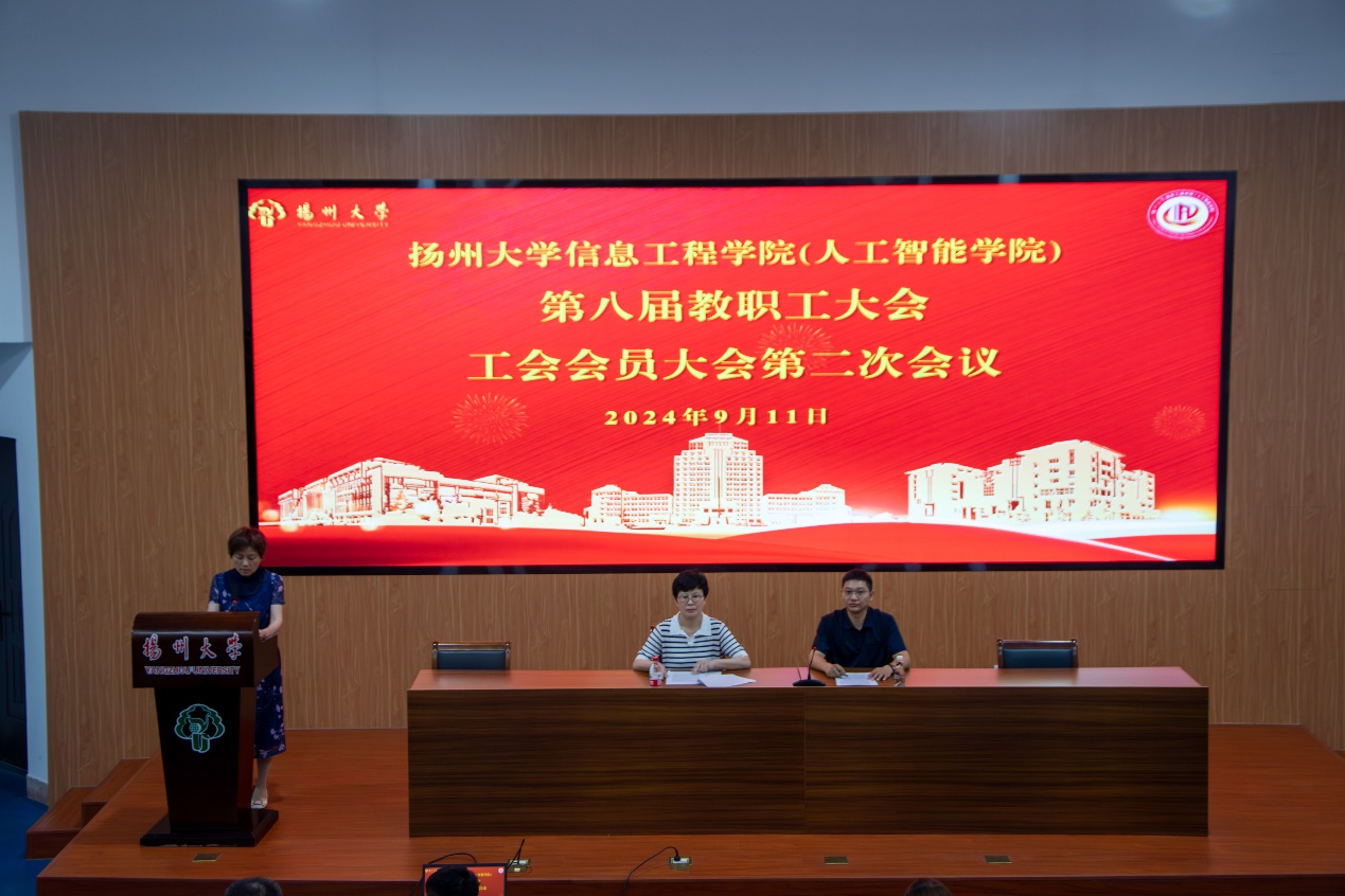 2024年9月11日下午,学院第八届工会会员大会第二次会议在东报告厅召开。党委书记吕红梅、院长孙小兵、党委副书记崔益军、副院长闵海强、裔扬、刘维,工会主席潘钧及全体教职工参加会议。