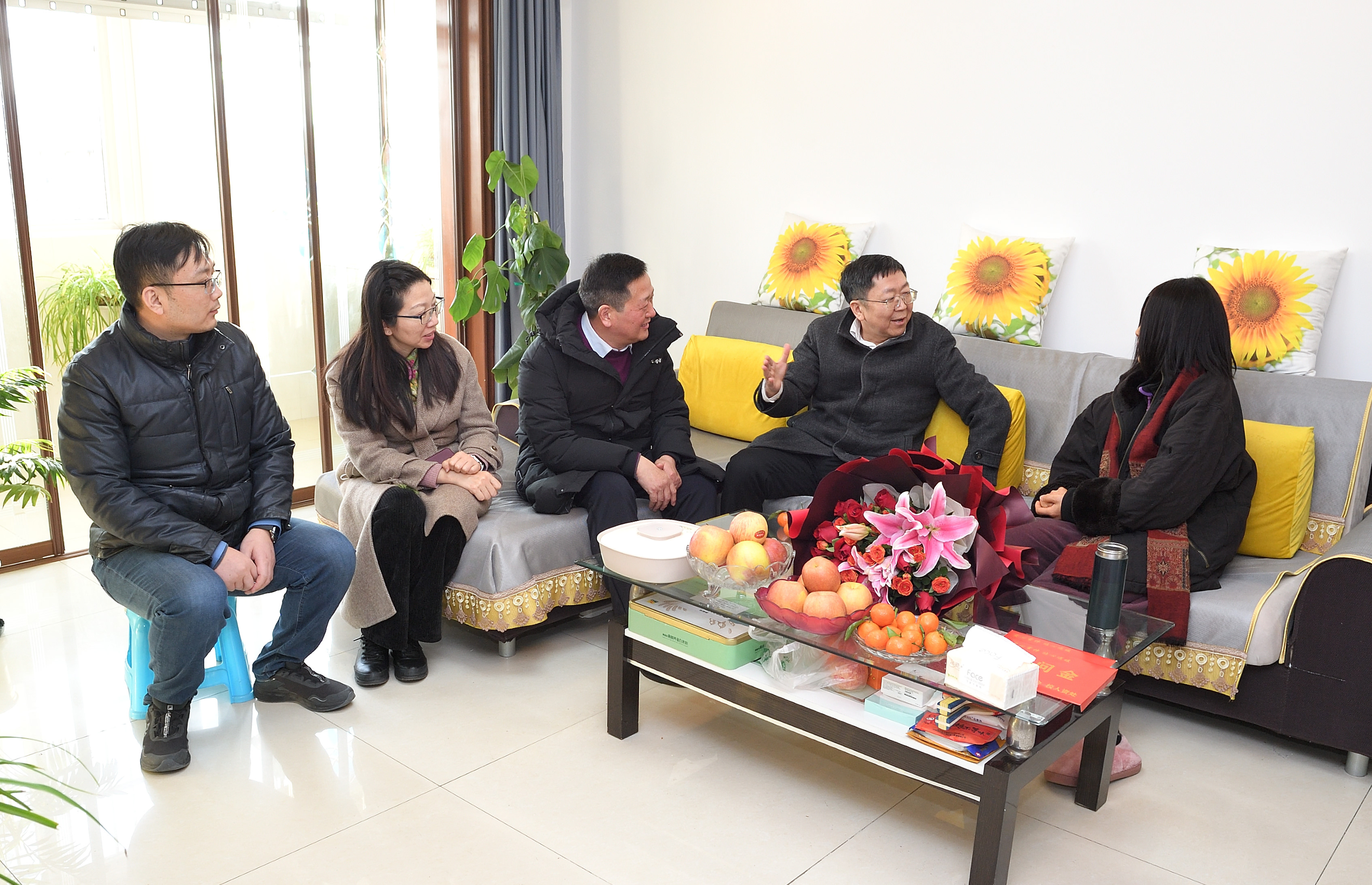 1月17日下午,江苏省总工会常委、教育科技工会主席寇芳,省教育科技工会一级调研员孙焱一行来我校看望慰问教职工代表,向她们送上新春的问候和祝福。校党委常委、副校长蒋乃华,扬州市总工会副主席韩士军、教科文卫产业工会主任钱永羊陪同慰问。校工会、校人资处、相关学院负责同志参加慰问。