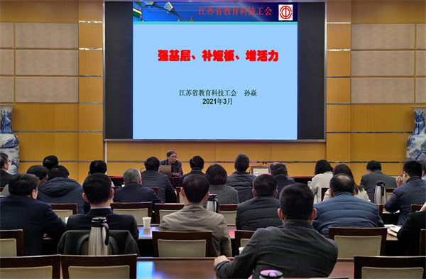 3月23日下午,校工会在荷花池校区教学主楼二楼多功能厅召开工会工作专题培训会,江苏省教育科技工会副主席孙焱出席会议并作专题报告。校工会主席高远主持会议。