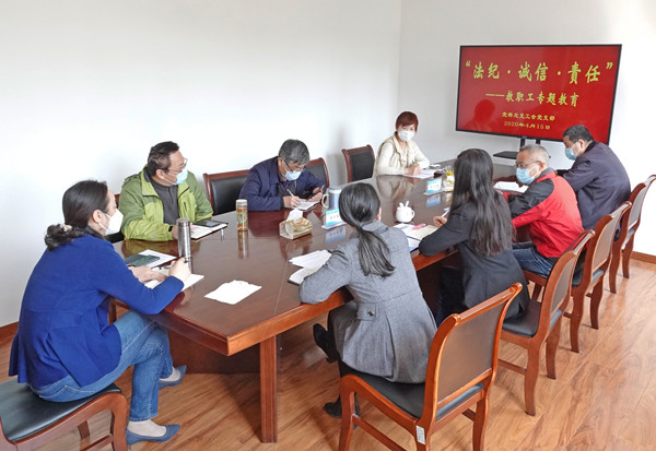4月15日上午,校工会组织全体教职工开展了“法纪·诚信·责任”教职工专题教育活动。