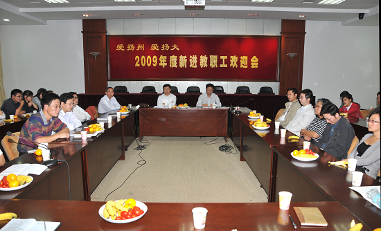 9月29日下午,校工会在行政楼一楼报告厅举办“爱扬州、爱扬大”—— 2009年度新进教职工欢迎会。党委副书记刘延庆、副校长胡效亚出席会议,校工会主席曹新元主持欢迎会。