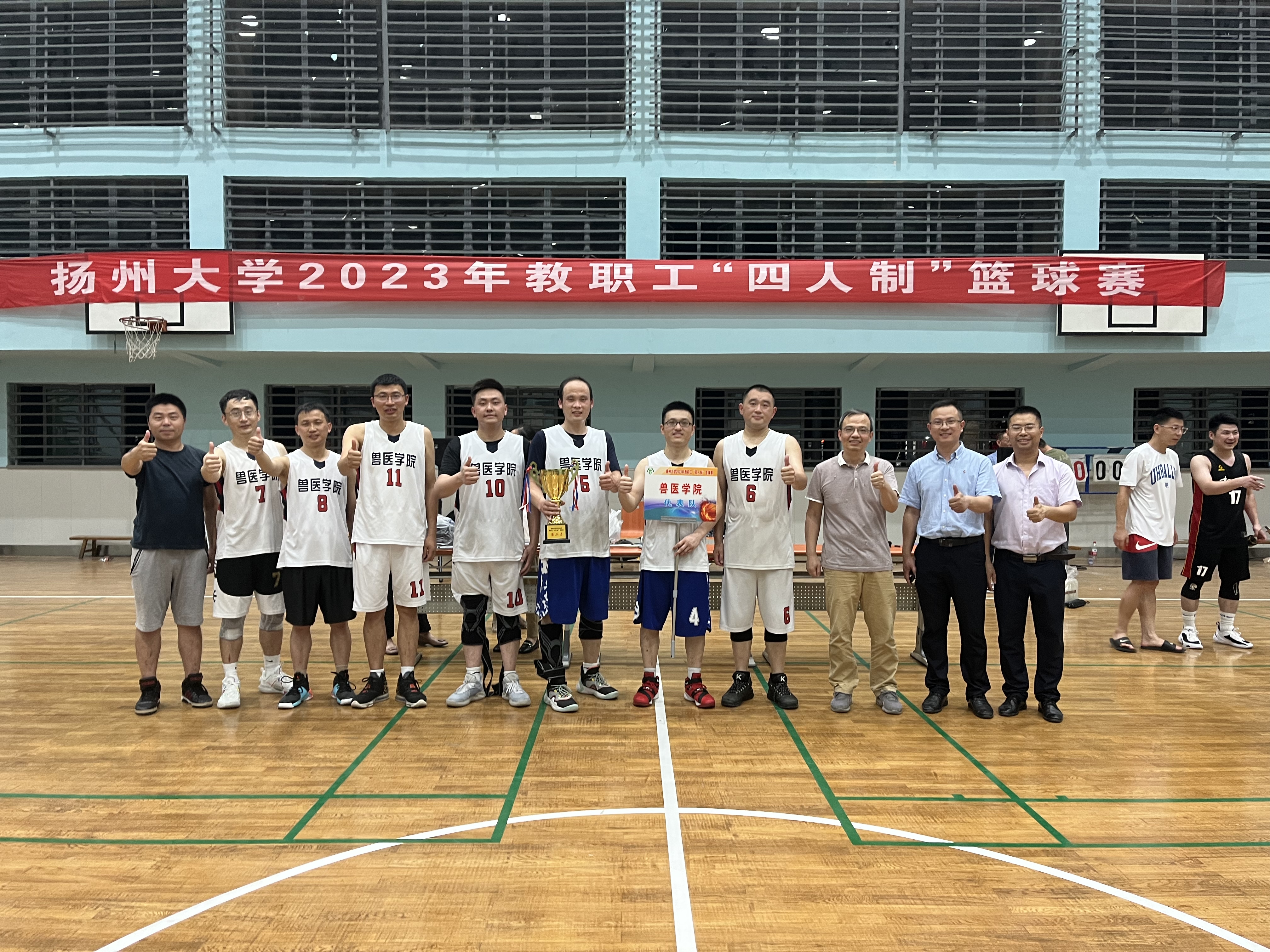 经过一天半紧张激烈的角逐,机关一队获得冠军,兽医学院、附属医院、物理-食品联队分获2-4名。机关一队卜天宇老师获得最有价值球员奖。