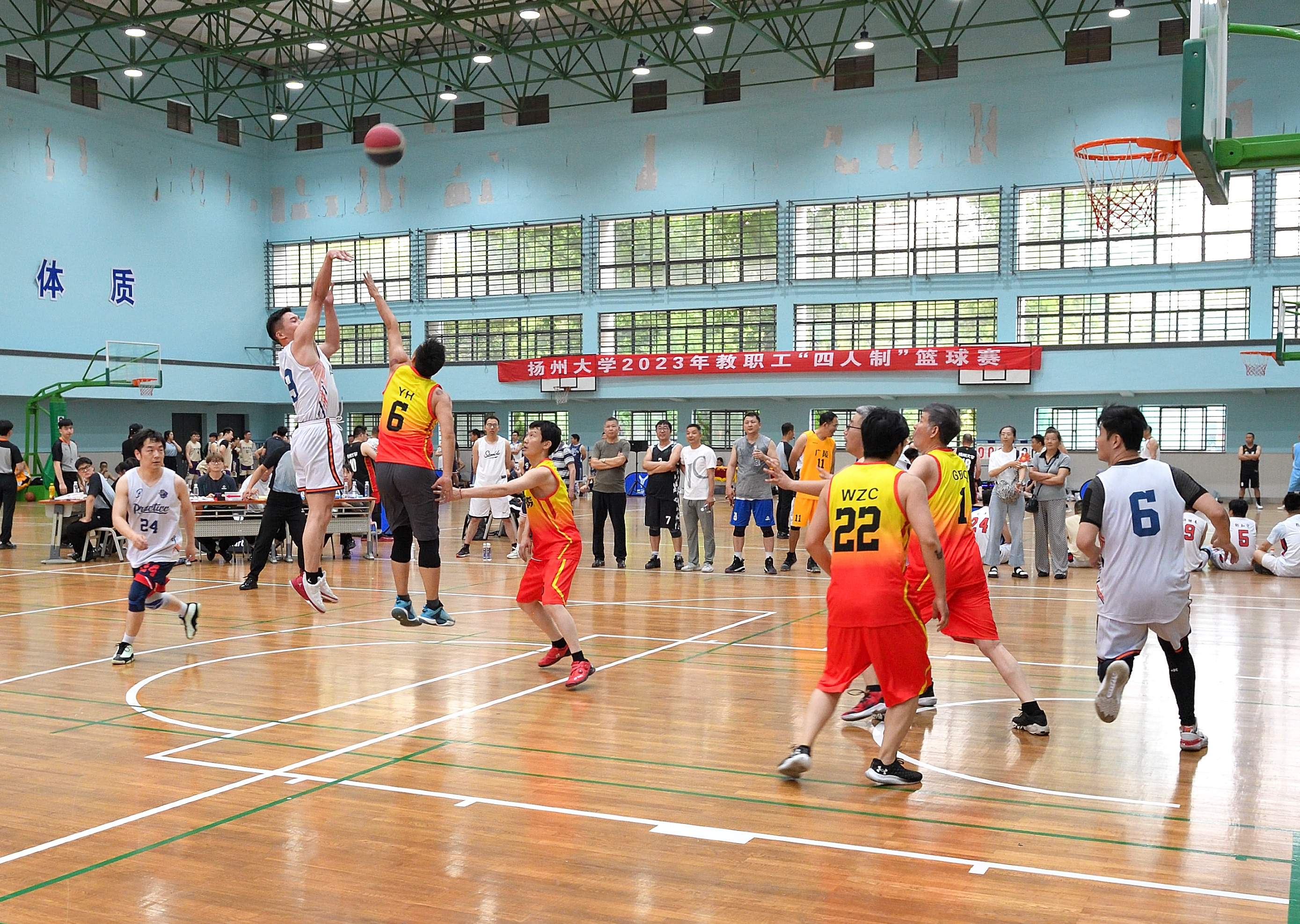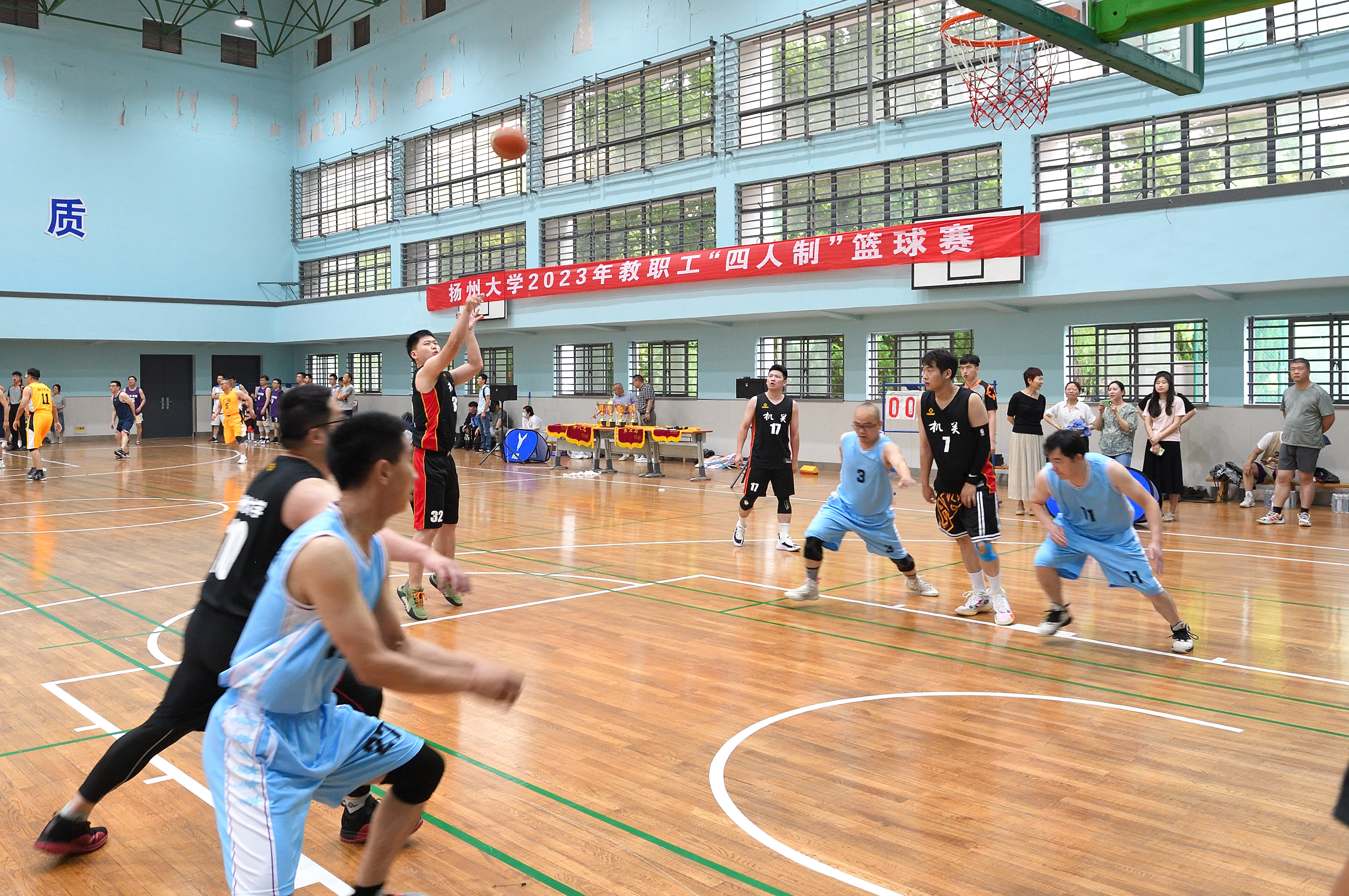 6月17日和21日,由校工会主办、篮球协会承办、体育学院协办的2023年教职工“四人制”篮球赛在瘦西湖校区篮球馆成功举办,共有30个二级工会组成24支代表队参加比赛。