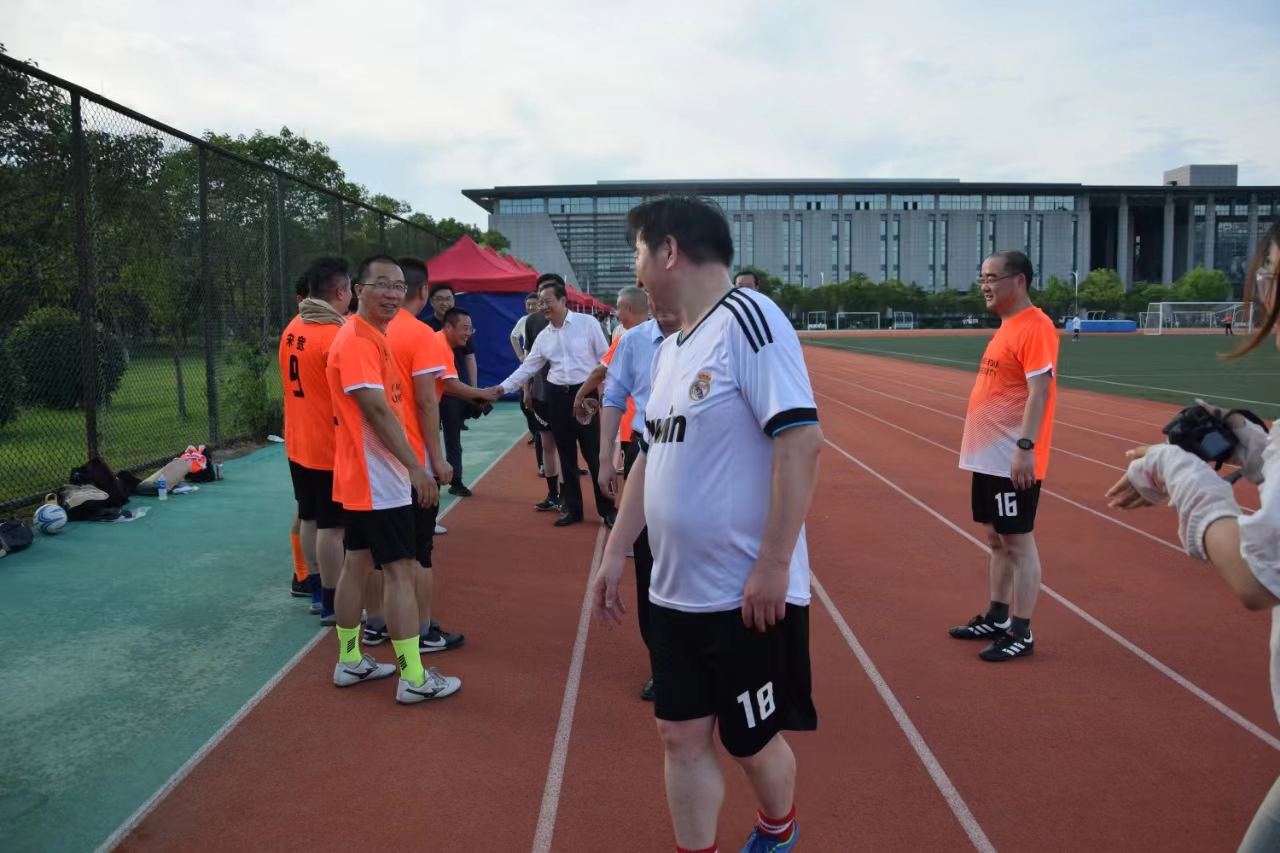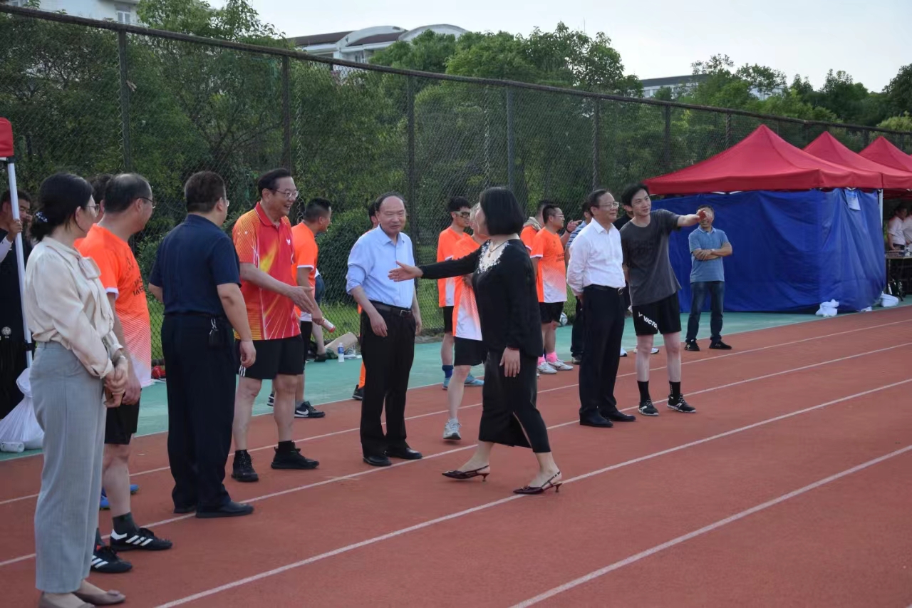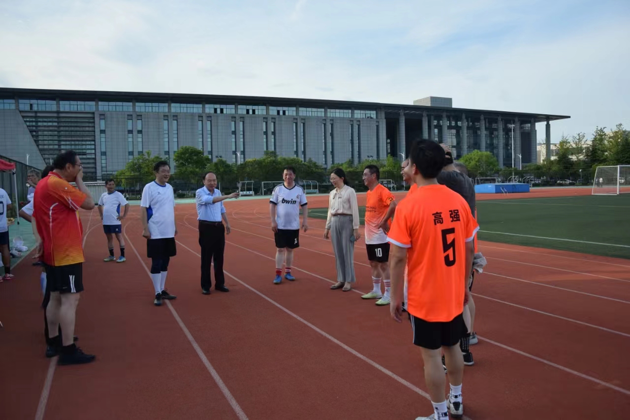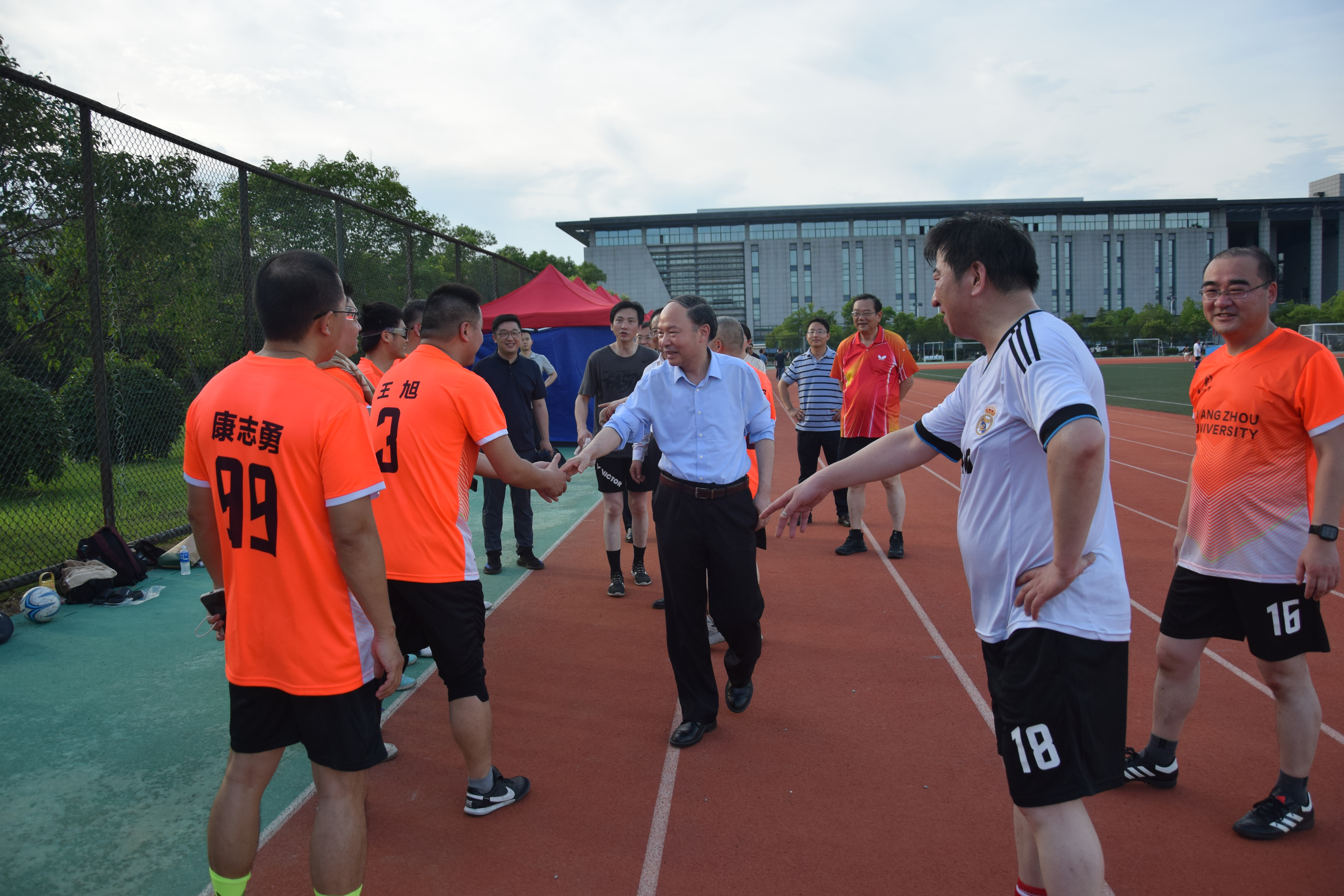 春季学期圆满收官、欧洲杯赛激战正酣之际,7月7日下午,江苏省政协副主席杨岳领衔的快乐足球队,在扬子津校区东操场与扬州大学教职工队举行了一场别开生面的足球友谊赛。校党委书记焦新安、校长丁建宁亲临赛场观战,扬州市政协主席陈扬为比赛开球。