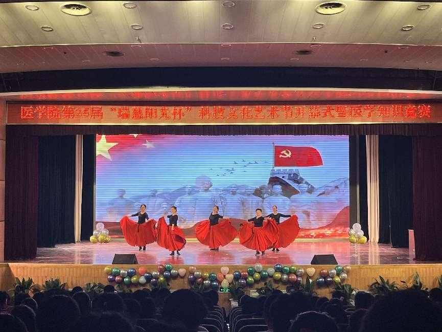 乘着温柔的春风,伴着和煦的阳光,2023年3月,舞蹈协会被邀参加扬州大学医学院举办的第35届“瑞慈阳光杯”科技文化艺术节开幕式,表演舞蹈《我爱你中国》,用优美的舞姿展现出炎黄子孙对伟大祖国的热爱之情。