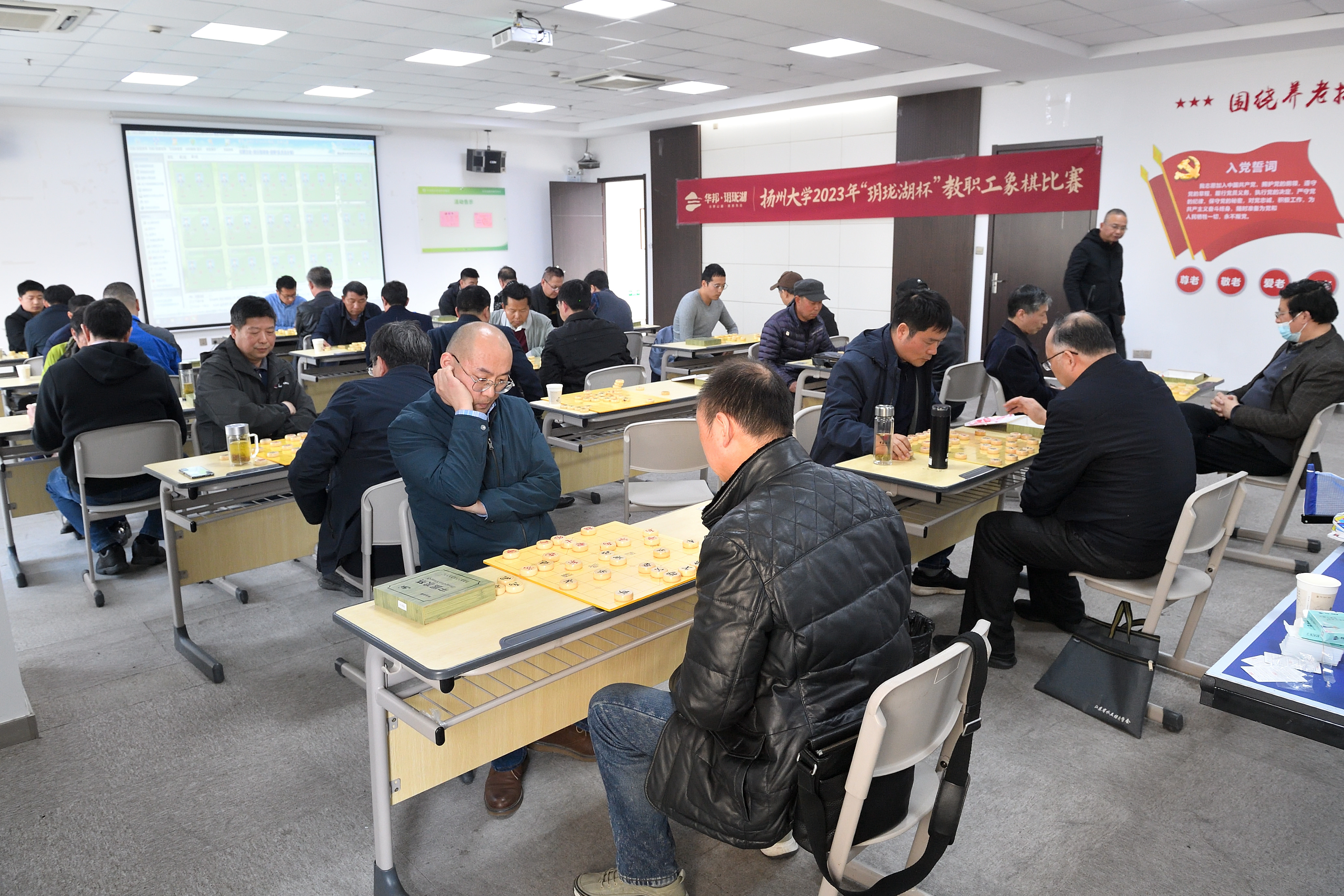 为丰富教职工文化生活,展现教职工风采,推进全民健身运动,2023年4月1日,由校工会主办、校工会象棋协会承办的扬州大学2023年教职工玥珑湖杯象棋比赛在仪征玥珑湖文化旅游度假区举行,来自学校各二级工会的近40名教职工选手参加了比赛。
