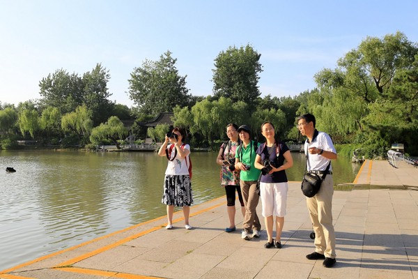 7月11日清晨,教职工摄影协会组织会员前往瘦西湖公园实地拍摄训练,开展作为教工摄影协会微信群理论课程——《基础摄影》天天微课的实践教学活动。近日,会长范文霈通过天天微课,为会员们图文并茂地讲解摄影基础知识,并理论联系实际,组织指导会员实地拍摄。副会长李苏伦也一起指导初学者拍摄荷花,并带领会员到主要景点,指导拍摄的最佳角度、最好时间、取景和用光等技巧。协会的理论和实践教学得到了会员尤其是初学者的一致好评。