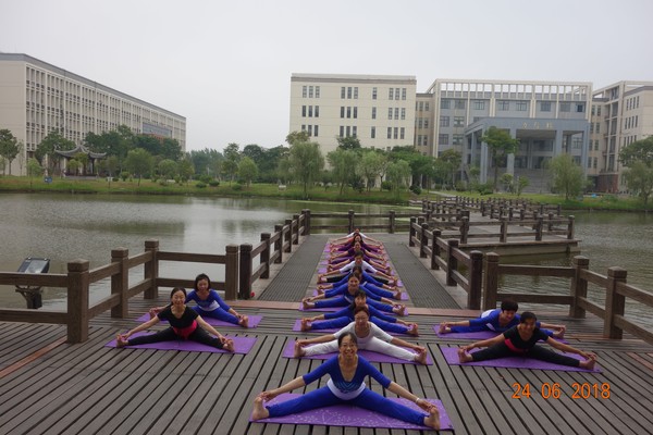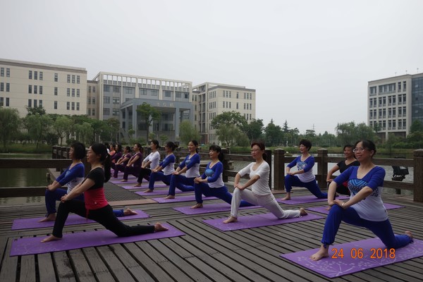 为庆祝世界瑜伽日, 6月24日上午,教职工瑜伽协会组织”走进扬子津,夏日瑜伽秀“户外活动。在晨光清风中,湖畔观景台和九曲桥上,会员们心无旁骛,松开眉头,保持微笑,舒展心情,放松身体,平衡姿态,在一呼一吸中吐故纳新,在一张一弛间强身健体,获得身与心的宁静。