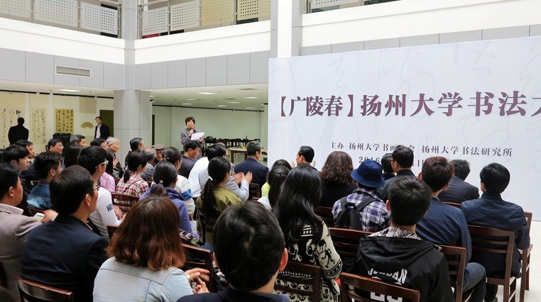 烟花三月的扬州,百花竞放,春意正浓,4月21日,由校教职工书画协会、校书法研究所主办的“广陵春•扬州大学书法展”在校逸夫图书馆一楼开幕。